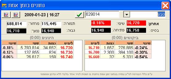 מניות ואופציות הנסחרות בבורסה בת"א.לחיצה על כפתור ה-R בחלקו העליון מצד
