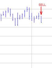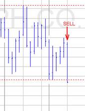 השנייה תוך שבירת רמת השפל הראשונה (בדוגמא מצד ימין) – זו היא נקודת המכירה.
